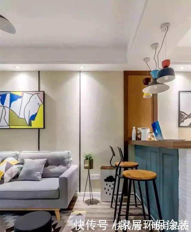 客餐厅之间用一个小吧台矮墙做隔断,既保持通透,又形成了各自独立区域。
