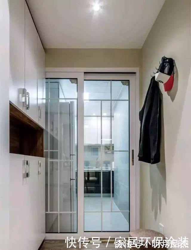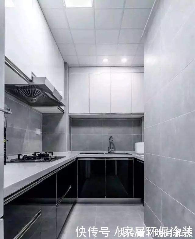 玄关里侧的白色边框玻璃移门内是厨房的位置,面积不大却做了空间利用率超高的U字型橱柜,操作空间使用频率超高,动线十分合理,收纳力和自不必多说,黑白灰经典组合配色让厨房整洁更显高级。